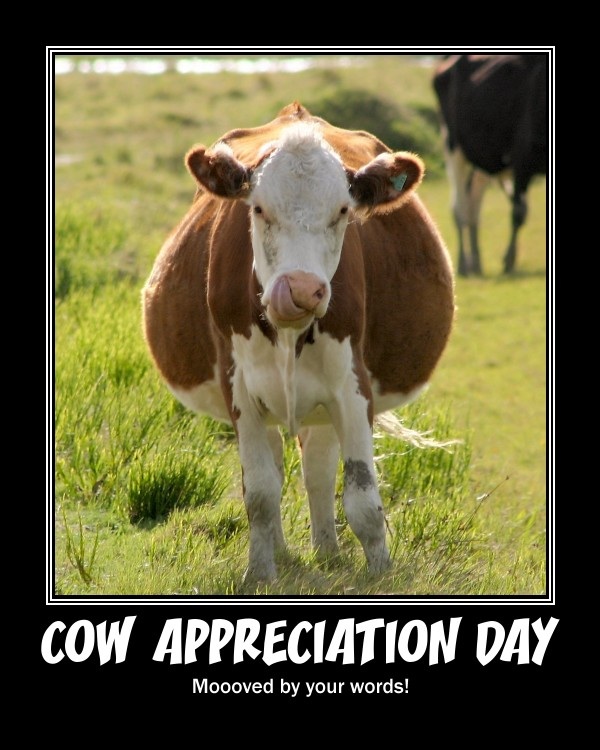 Today also happens to be Cow Appreciation Day - so make sure to make that special cow in your life, feel good.. Yeah, that's what I'm talking about.. Aren't they adorable?: "Please don't eat me.." *batting long lashes* IP: Logged |