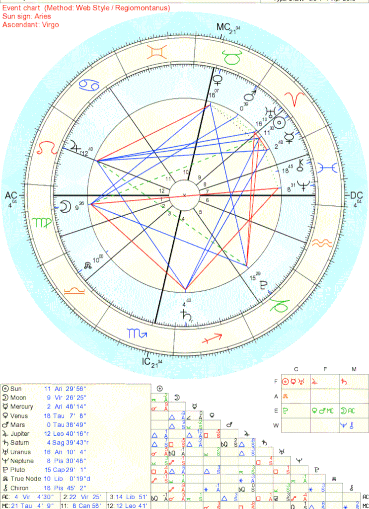 That's fantastic... and seeing the trine with Venus helps me believe that things are going to work out fine in the end. Venus does have to change houses first, so something is set to change first, and then things should work out. Honestly, with such early degrees on the mutable AC though... there is still much time for change... IP: Logged |