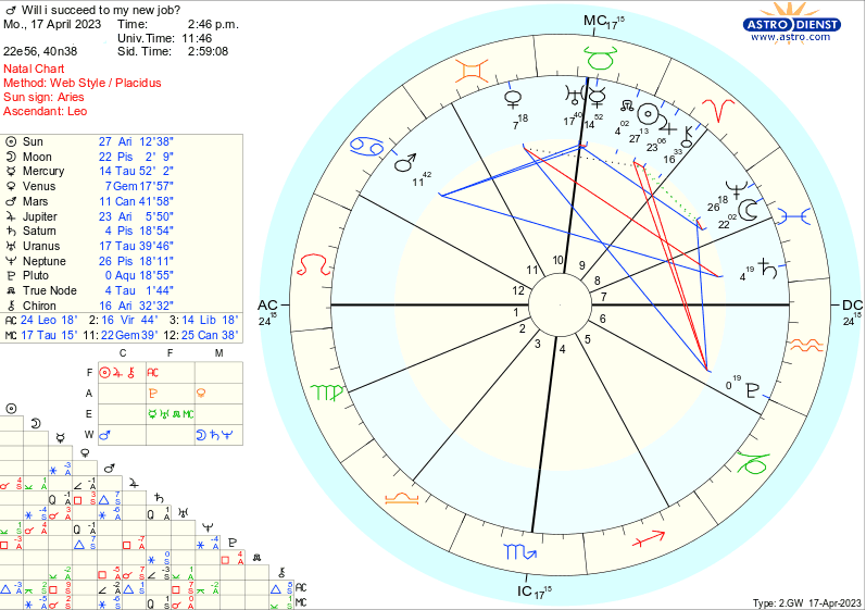 You don't to be this way - you choose to be this way. Everything is a choice and you have the free will to change anything you don't like or don't want to experience believe it or not. It's all to do with your mindset. I used to suffer from anxiety and only saw life from a negative perspective but I learned over the years that it doesn't have to be like that and once you see this for yourself things DO change. It might take you a long time to work it out but know this much, everything you believe about yourself and the world is TRUE - TO YOU. Not everyone else. You can choose to see all the good things this new job offers or just notice all the things you don't like. That bit is up to you. This might not be what you want to hear but it might be the thing that you need to hear! How you take it is down to you. I looked at the chart and this is my take on it. The Moon is Void of Course. When the Moon is Void of Course, it suggests an unforeseen pause where there is no immediate sequence of events or progress. You could be worrying about nothing. With the Moon applying to conjunct Neptune in the 8th house – you may not be seeing or thinking things clearly or there is something you haven’t seen as yet which is causing your distress and anxiety. The job is ruled by the 10th house - Venus. Reading the receptions as per John Frawley, the Moon exalts Venus – which shows you have high expectations for the job but aren’t seeing it for what it is and this is likely to change after a time or reading the receptions the other way around the job has high hopes for you but you may let them down. Just remember, any form of divination is only bringing awareness to the current circumstances if you choose to do nothing to change it and leave things to pan out on its own but at no point is it written in stone. You have the ability to change anything you do not like that may be seen in the chart by taking the necessary action to reach an outcome that you want.