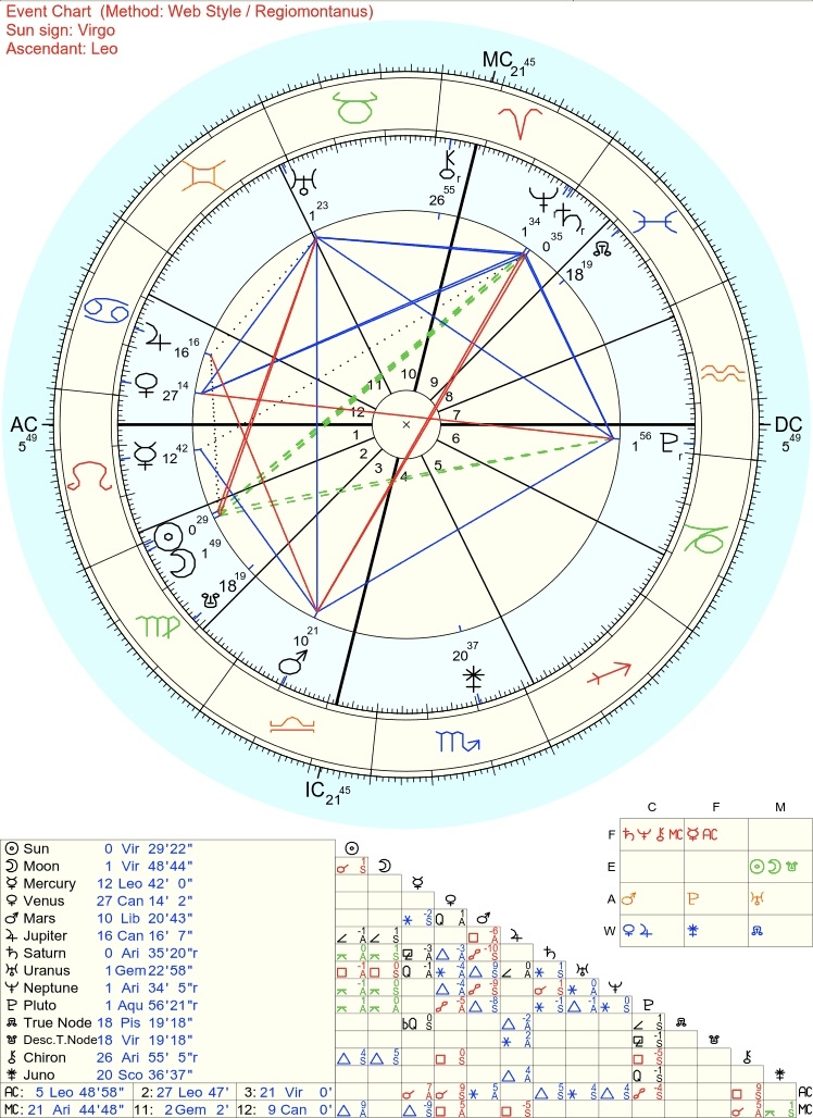 My interpretation My sig is the Sun and his is Saturn which is in the 9th house. Saturn does not make any aspect to Venus. The Moon next aspects Mercury which is the ruler of his 5th house and then aspect the Sun next. So with his Saturn being in the 9th house. Could this indicate that it's about self improvement? IP: Logged |